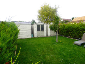 Az ingatlanon külső homlokzati szigetelés, két rétegű üvegekkel ellátott műanyag ablakok vannak. A kert végében egy privát tároló található.