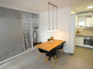 A lakás átgondolt tervezésének köszönhetően kényelmes, otthonos, szellős, viszont ugyanakkor bővelkedik a praktikus megoldásokban.